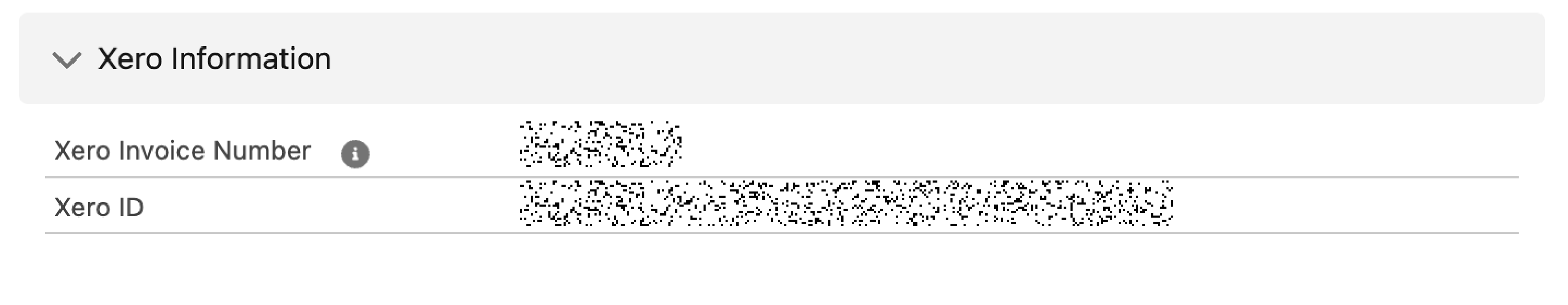 After an invoice has been successfully synced, the Invoice Record will be updated accordingly. Two new fields will be automatically populated from Xero. These are the `Xero Invoice Number` and `Xero ID`, as shown below. These values come from Xero and will help you identify the associated Invoice between **Maica** and Xero when required.&#x20;