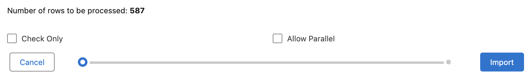 * `Check Only`: Check this option if you want to **validate** the file and the import prior to processing it. By selecting `Check Only`, **no records** will be created or updated in Maica.