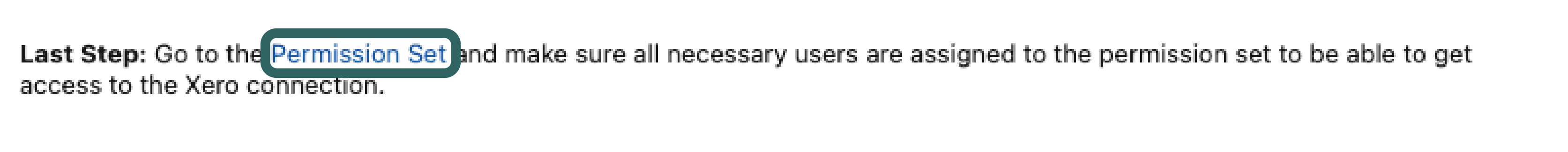 To begin, click the hyperlink to the Permission Set in the Xero OAuth Connection Setup pop-up, as shown below.&#x20;