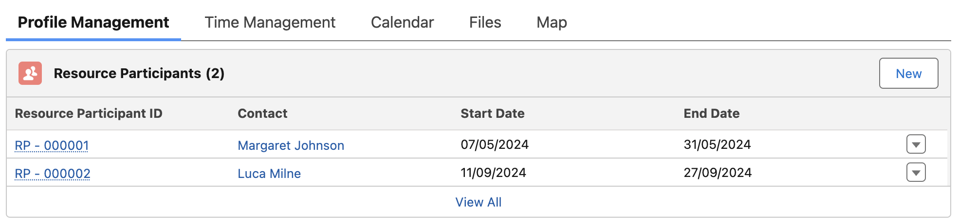 The `Resource Participants` list is directly related to the `Participant Resources` list on the [Participant Profile](https://knowledge.maica.com.au/maica-knowledge-base/participants/participant-profile). This means, if multiple `Resources` are caring for a given `Participant`, this will be reflect on the `Participant Resources` list and display on the [Participant Profile](https://knowledge.maica.com.au/maica-knowledge-base/participants/participant-profile) under the Client Care tab. This list will be dynamically updated if an update occurs on the `Resource` Profile.